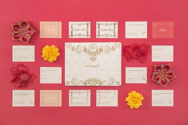 Being extremely playful and a board game geek in nature, I masked the seriousness of this topic by turning it into a lighthearted game. Using inspiration from my own life, I made a game that involves coming up with creative ways to avoid an arranged marriage.