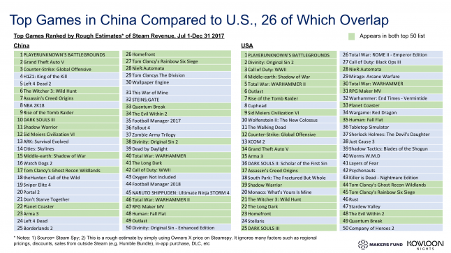 China lags behind in the number of titles its users own, but more than makes up for it in active accounts (20 percent, compared to 14 percent in the United States) according to a report from Steam Spy creator Sergey Galyonkin. When it comes to creating and marketing premium-priced games for a worldwide market, China can simply no longer be ignored.