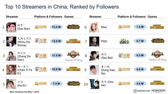 According to a streaming industry report by iiMedia Research, China was home to nearly 400 million streaming platform users in 2017—a number expected to reach 500 million by 2019. In 2016, Twitch-like platforms in China (Douyu, Huya, and Panda TV) grew rapidly after receiving large investments, allowing them to spend aggressively on user acquisitions and expand their viewership.