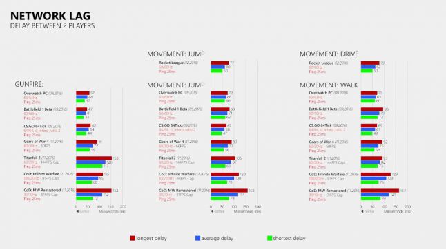 But when stacked against games that send or receive data at less than 60 Hz, the difference in lag is considerably larger. For example, Rocket League's lag for a jumping movement is nearly half as much as that of Call of Duty: Modern Warfare Remastered which averaged 117 milliseconds.