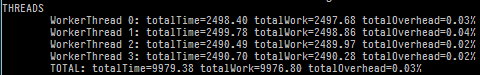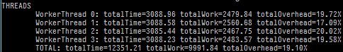 In this scenario, ~19% of total time is wasted with blocking or other overhead. In other words, only~81% of the worker thread’s time is spent doing actual work: