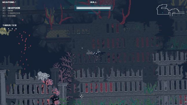 The player's vessel is tiny on the screen, which makes them feel even more insignificant while exploring the beautiful undersea world...and more vulnerable during the battles with sea creatures.