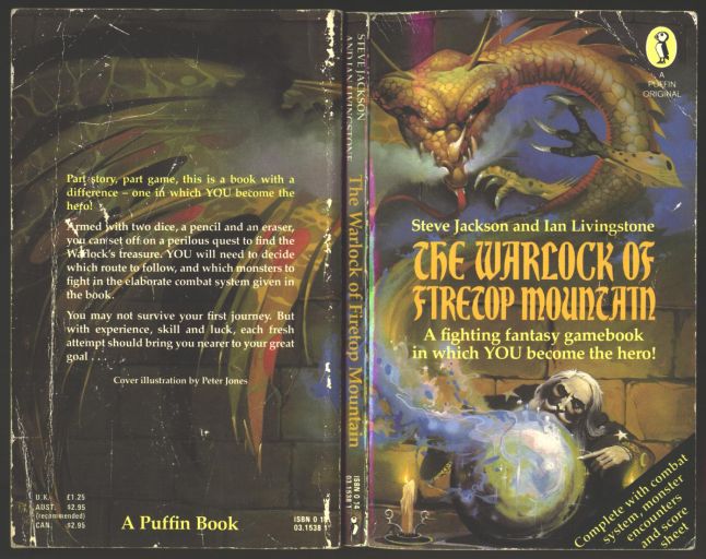 The Warlock of Firetop Mountain was an adventure gamebook published in 1982 by Steve Jackson and Ian Livingstone, the first entry in what would be the Fighting Fantasy series. The cover proclaimed, "This is a book with a difference--one in which YOU become the hero!"