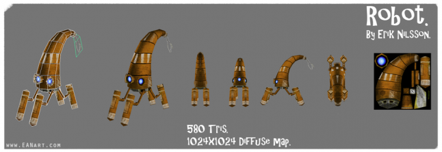The same can be said for texture work and design, you want to find some way for your art to stick out from among the huge pile of other artist portfolios. Another really important thing to show in your presentation is workflow. For a 2D artist this can mean including thumbnails, sketches and variations under the final rendered design. For 3D artist you usually want to show one or two beauty shots, with a wireframe, maps, triangle count and maybe a few close-ups or in-game shots.