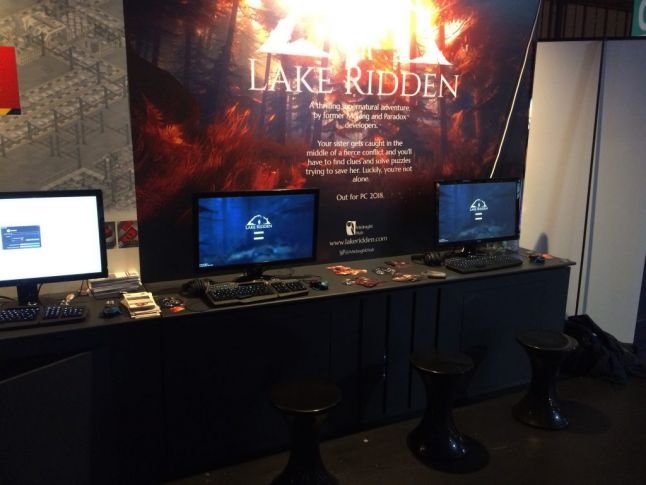 This is the final booth art we used to promote Lake Ridden at EGX in Birmingham 2017. Below I'll talk about how we arrived to this!