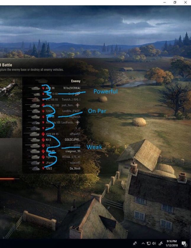 If you had a tier 7 tank, the matchmaker would put you in a match rated at tier 6, 7, or 8. It would then populate the match with tanks within one level of that tier, with the limitation that tier 10 was the highest available tier, and tier 1 the lowest. The result is that in some battles you would end up “powerful” with a tank a tier level above the level of the match, and sometimes you ended up “weak” with a tank a tier level below the level of the match.