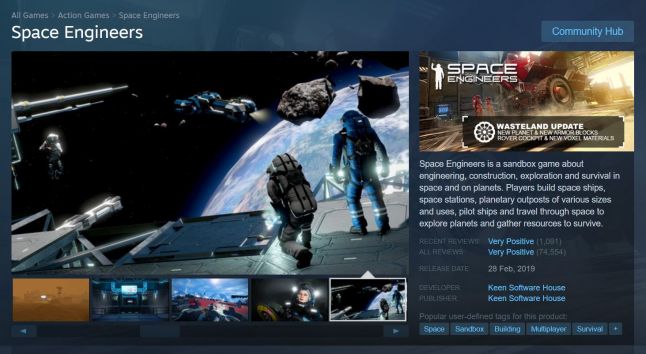 Space Engineers is an excellent example or a description that only focuses on gameplay. You immediately know if that’s the type of game you’d enjoy or not.