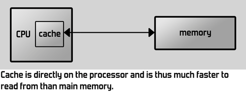 Let's have a look at computer memory, or RAM. Computers these days have gigabytes of very fast memory that's used to store whatever the game or program needs to use on the fly. But is that memory truly so fast? Physically, it's a separate part of the computer. Whenever the processor needs to get something from memory, it needs to be transported to the CPU. That only takes a tiny bit of time, but a modern processor can perform billions of operations per second. At those kinds of speeds, a tiny bit of time is actually a lot of operations that the processor could have done during that time. Instead, it's waiting for something to come out of memory.