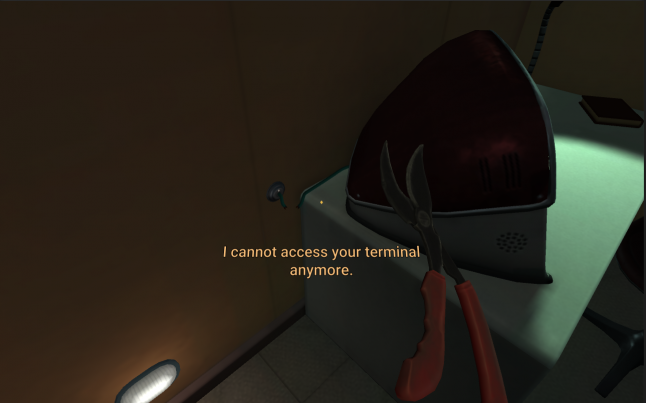 If you do so, Konstantin will ask what you’re doing because he didn’t expect you to be that smart. Using the duct check-point with the scissors in the hand will open a new branch of the story that was not in the main flow of events. You will be placed at the Habitat where it is possible to cut the network wires of the computer to access hidden messages and logs to understand more about the story of the game.