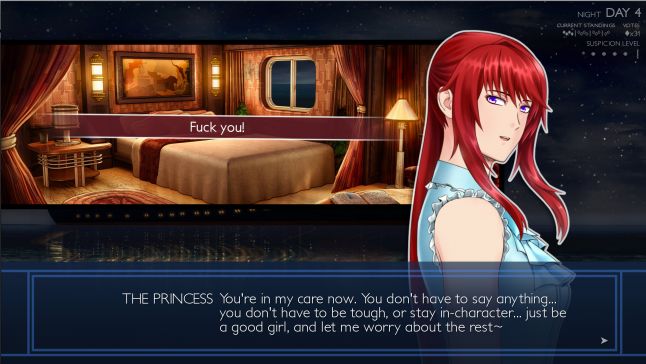 Why is your character put in this, the titular ‘bind’? Well, that’s for you to find out. That requires surviving the seven day long cruise without seeming too suspicious, and doing that requires navigating that thicket of self-important politics that can only emerge in the environment of a wealthy private school. Layered onto all of this is The Game, a contest where every student is competing for votes in a bid to win five million dollars; it’s a neat bit of lampshading that makes a mechanic part of the story--and its silly, aristocratic decadence is rather the point, as extended play reveals.