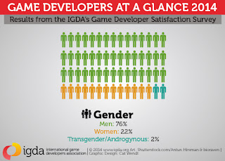 The IGDA's 2017 Developer Satisfaction Survey (DSS) was released this month (and can be downloaded here) and in it, you'll find that according to the data, the typical worker in the video game industry, whether freelance, self-employed, or employed, is a 30-something, white or multiracial with white, heterosexual, college-educated, married male without a disability or children. According to the 2017 survey, 74% of respondents identified as male while 21% identified as female. Despite growing interest in the importance of diversity, very little has translated into actual change at companies, as can be seen from the similar results on the 2014 DSS survey.