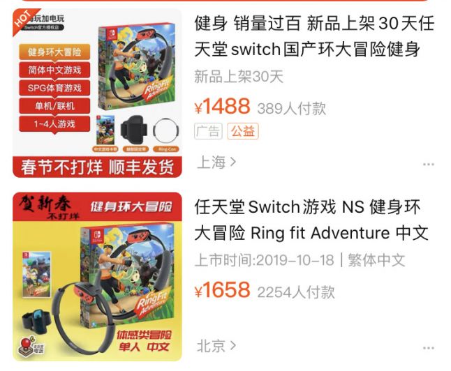 And consoles also enjoy a sales mania. “Our consoles and discs are sold out in a week.” A Taobao store owner says. During this period, both PS4 and Switch become highly sought-after items. A typical example is, the Switch game Ring Fit Adventure, in US Amazon store its price is $124. And on Taobao, the price is steadily at rise, a few days ago around ¥1000 ($140), now around ¥1500.