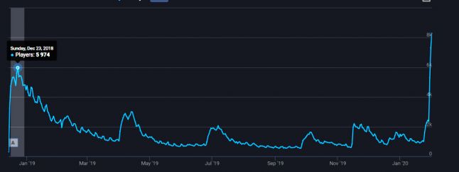 And many MMO Steam games reaches historical high number of active online players. Below is the graph of a Chinese game on Steam.