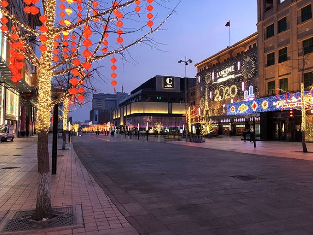 Beijing's most busy commercial street Wangfujin Avenue in this year’s Lantern Festival evening, it's quite empty.