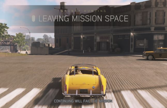 Lastly, if player leaves the car and goes far away, the mission script detects it and warns player of leaving the mission space. If player still goes farther, the mission is failed.
