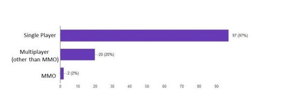 Most of the games chose a single player experience, however, there is a resurgence of co-op and local multiplayer, with 20% of the games having at least one of these features.