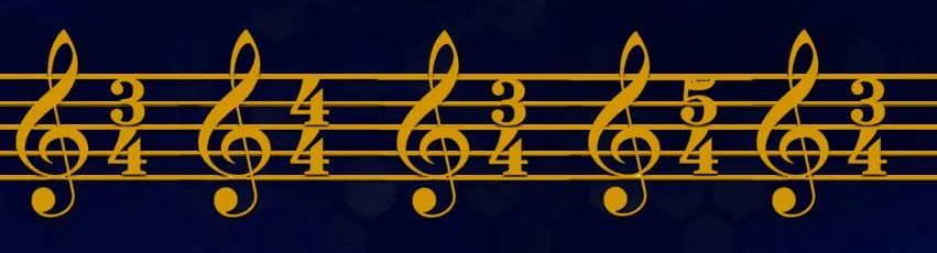 The time signature moves from triple meter, to a single measure of common time, then back to triple meter, then to a single measure with 5 beats of irregular time, then back to triple meter again. Let’s listen to that: