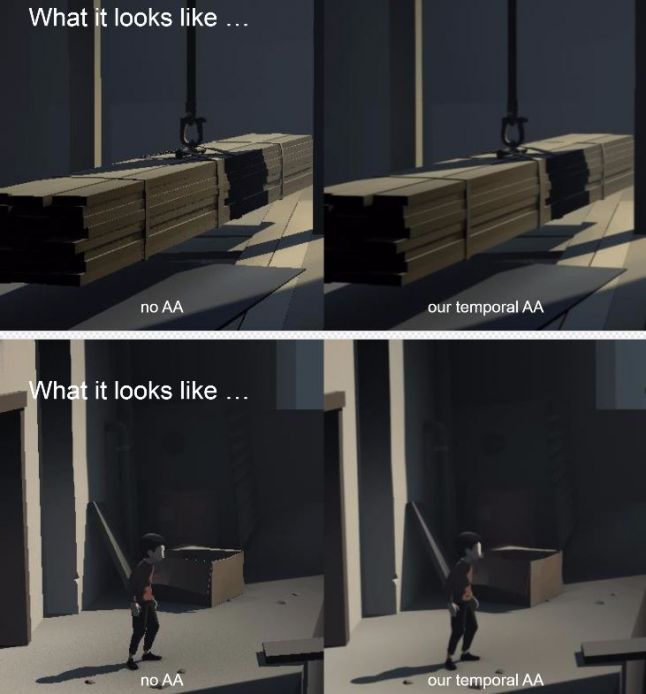 Since Inside is a Unity game, Playdead's temporal reprojection AA tech is geared for Unity 5, and is available (alongside a set of slides from Playdead's recent GDC talk) under an MIT open source license on the company's GitHub page.