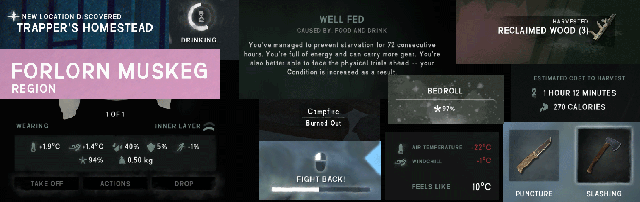 Here’s an interesting challenge for you – convey to the player over 10 different game states without breaking immersion. Strike a balance between player control and suspense, between clear communication and immersion. Do all of that without making the player feel like they’re walking around with a plane dashboard strapped to their head. Let’s see if we can solve that challenge, learn from and improve The Long Dark.