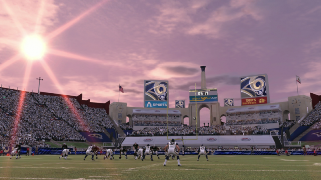 This goof is reportedly extra-notable because this version of Madden requires the player to play as the Los Angeles Rams in the aforementioned LA Memorial Coliseum during a sequence in which the sun is setting -- on the wrong side of the stadium.
