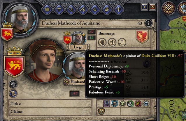As noted in my previous article, generated personalities tend to be explained up-front, closer to a "tell then show" approach, with the player taking information about personality traits and comparing it to character behaviour to form a mental model of the underlying algorithm, such as Crusader Kings II, Black and White, or Dwarf Fortress.