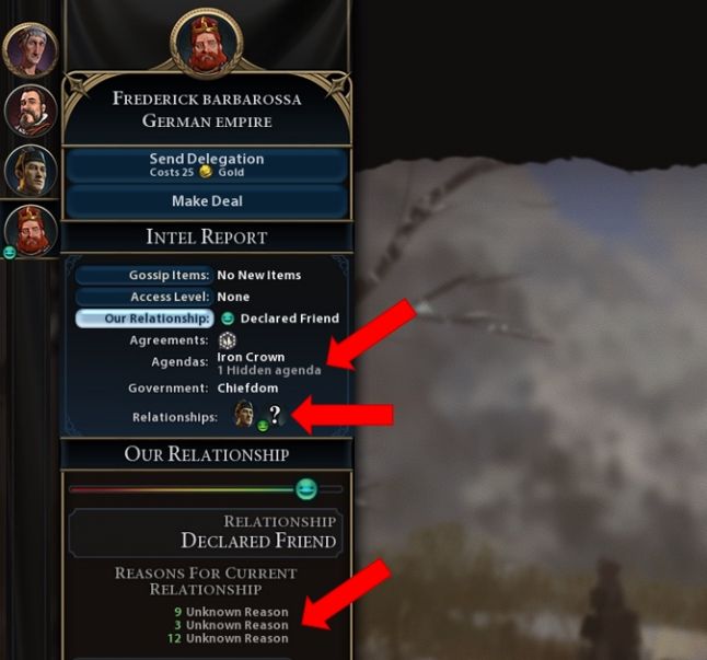 At the least, for those elements we hide from the player, it seems safest to hint that they are there somehow. Civilization ruler AIs may have become increasingly complex over the years, but they've also started being more coy about hidden elements, hinting at them overtly. This piques curiosity, and prepares the player for emotional satisfaction when those elements are eventually revealed.