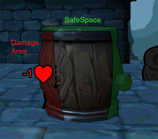 The height is smaller than the barrel but the length is 1.3m compared to that of the 1m Barrel. There is no safe spot when it comes to landing on the top of the firepit, so players can receive damage from the front but also the top of the object. Players lose the same out of health with 1 HP but the chance of receiving the damage has basically doubled. This increases the difficulty of the obstacle but not huge a spike in difficulty.
