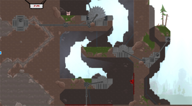 Once the player has mastered this, they will then will face moving buzzsaws! Which move along the X-axis, which teaches players to jump with timing.