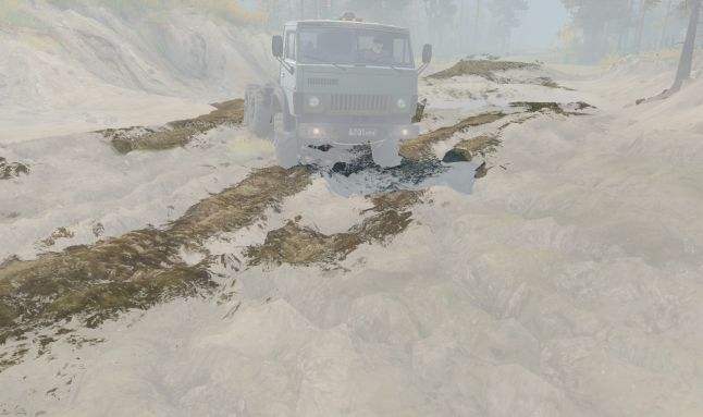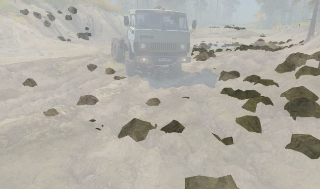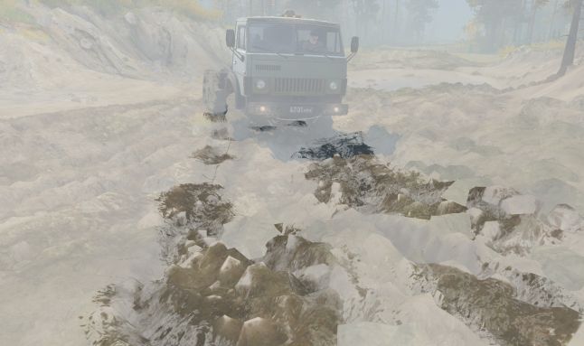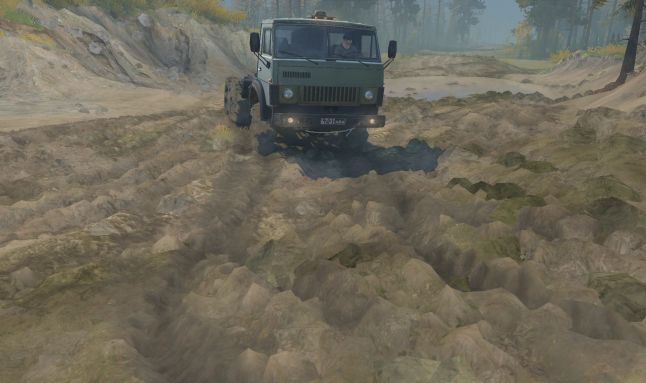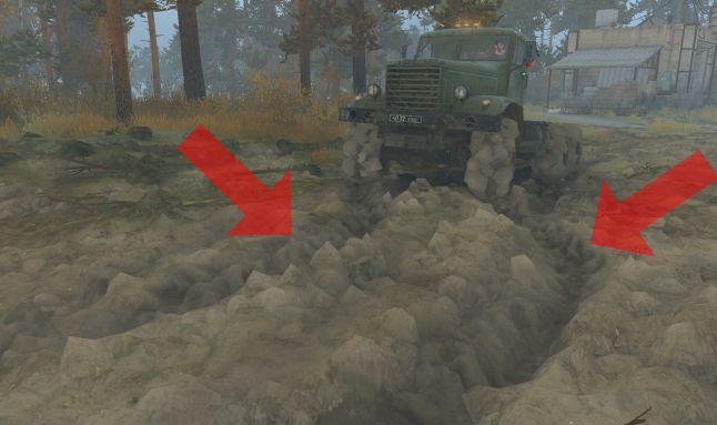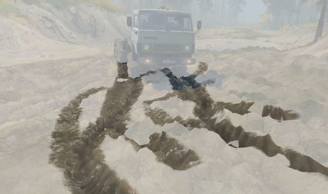 The mud simulation consists of mud-vehicle physics processing (performed by CPU) and rendering of the mud (performed by GPU). For a number of reasons (CPU and GPU are out of sync on PC, high detalization required for rendering is not required for physics, etc..), those two tasks operate on completely different sets of data. We won’t go into details of physics here, but in short, there is no rocket science involved, but it’s not something Havok (physics engine in MudRunner) can do out of the box.