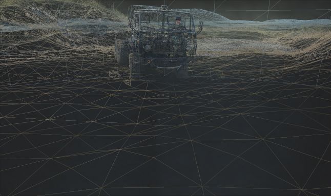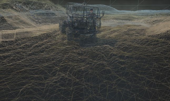 But most of the game level terrain is actually rendered at lower resolution. So if vehicles have not deformed terrain, its wireframe would have looked like this: