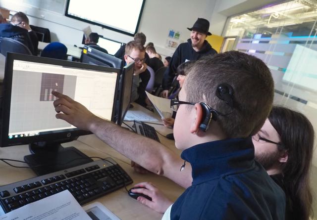 We then ran through what the day would involve with short introductory talks from ourselves and Abertay. Alex gave a light hearted introduction to what code is, what it does within game development, and how our favourite games are underpinned by maths. Matt introduced visual design in games and the role that artwork and artists can have in game development. The talks culminated in a great inspirational speech from Abertay Lecturer Ryan Locke about why we love games and how that love can translate to game-making and one day game development as a career, and the routes made possible through courses at Abertay University.