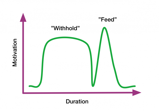 By alternating between feeding and withholding the carrots, you control the duration by tuning and balance the grades of engagement (intensity) and its effects on the emotions and motivation.