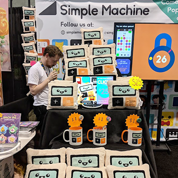 Merch was a new thing for us this year. Previously we would show up with free pins, toss them on the table, and that was that. Think last minute candy for Halloween. This year we brought Clicky plushies (the character from Calculator: The Game) and made plastic wrapped pin packs of our characters from our upcoming Twitter game release.