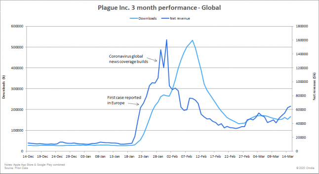 The game launched in 2012 and its long-term performance has been modest. A remake entitled Plague Inc.: Evolved launched on Steam, PS4 and Xbox One in 2015/16, and it later came to Switch in 2019. A board game based on the IP was also released in 2017. The biggest markets for the mobile title were China and the USA. However, following a coronavirus-fuelled surge in DAUs and revenue earlier this year, the game was banned from the Chinese App Store, with the government citing illegal content. As such, companies should be wary when attempting to capitalise on the COVID-19 outbreak via games content, advertising or other media forms, as territory-specific sensitivities may prove damaging, and offset any potential gains.