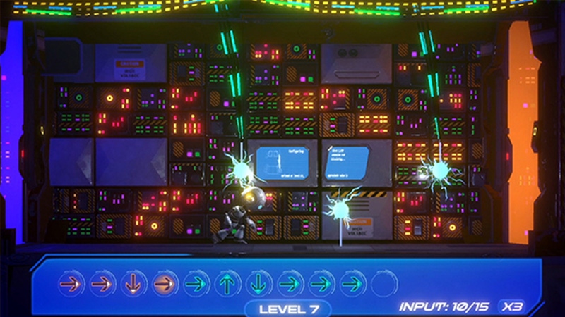 So I thought that the character could be a Robot. And its commands could be inputs given by the player. Furthermore, the futuristic environment gave me the possibility to insert all those elements mentioned before.