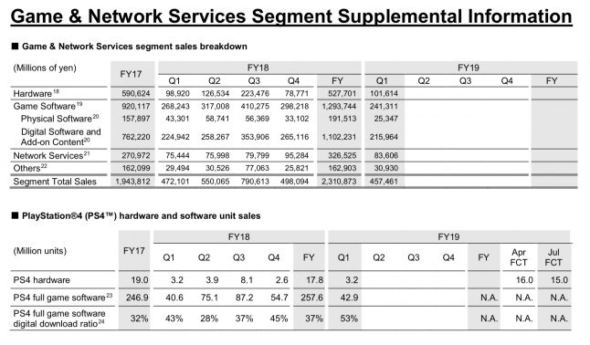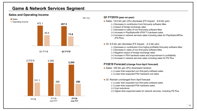 Based on those results, Sony has downwardly revised its full year forecast for the games segment, and now predicting sales of 2.2 trillion yen ($20.3 billion) and operating income of 280 billion yen ($2.6 billion) by the end of the fiscal year on March 31, 2020.