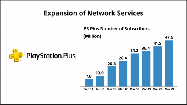 According to Sony's own internal numbers, PlayStation Plus boasts roughly 47.6 million subscribers as of March 31, 2021. That's up just over 6 million from the 41.5 million reported back in March 2020, and up nearly tenfold from when the PlayStation 4 first launched in 2014.