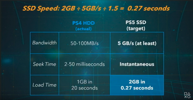 For the PlayStation 5’s SSD, PlayStation is targeting 5 GB per second load times to allow games to boot in only seconds, and eliminate load screens all together.