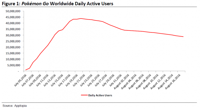 Apptopia's data, which has been making the rounds this week after it was pulled by Axiom Capital Management and provided to Bloomberg, describes a striking decline that's well in line with Pokemon Go's meteoric rise last month to become a globe-spanning pop culture phenomenon.