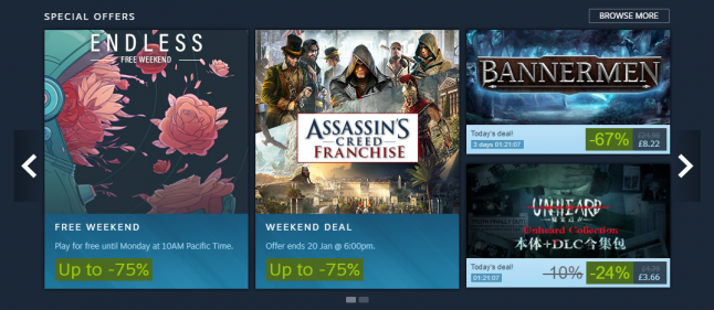 It’s a no-brainer that the Steam home page is the most significant impressions feed across the board. Steamworks proudly claims 94 million MAU and 1 trillion daily impressions, so… there’re a lot of impressions to go around.