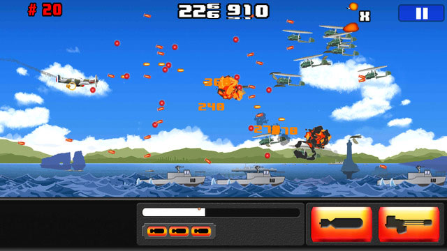 We didn’t spend a lot of time thinking about our audience, and I believe it’s one of the core aspects of mobile development. The game is made to appeal to achievers, with a progress curve coming from the upgrades, the skill of the player and his knowledge of the enemy waves (which are always the same), but in the same time it has nothing really original. The mechanisms are very classic, with the small exception of the bombs you can drop on the boats, and the graphics aren’t extremely compelling. All in all, our target players don’t have any good reason to seriously look at Red Skies.