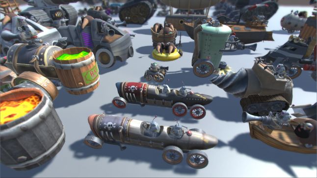 An assembly scene in Unity where all enemy vehicles were placed in for a better overview.