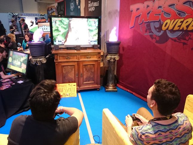 We also used noticeable signs (hand-painted, of course) and a direct approach to invite visitors to achieve the best high scores of the day and win Steam keys in Pressure Overdrive’s Endless mode. Most didn’t need to be asked twice. It was immense fun and our yellow sofas were occupied almost constantly. Sometimes we even had a line.