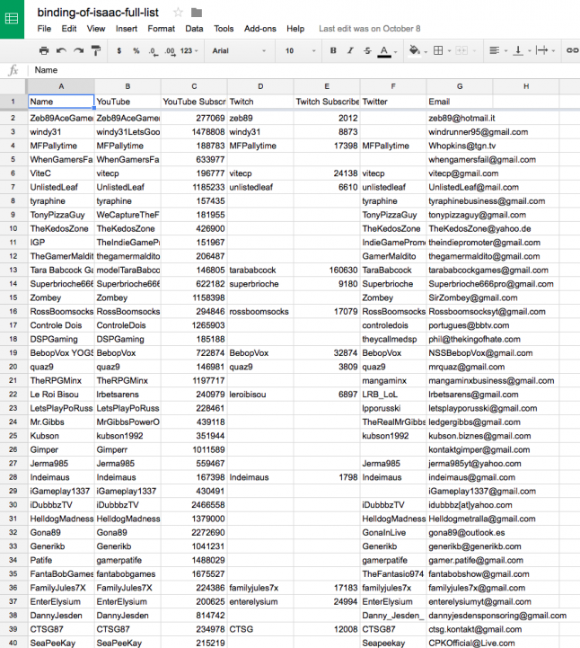 This ultimately ended up in our official press list. To further build our press list, I used woovit and import.io to build lists of YouTubers and Twitch streamers that had covered the above-mentioned games.