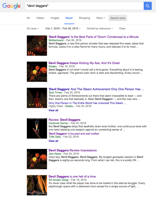 After listing these games out, I researched launch month coverage for each title. I did this by searching in Google news for “game title” and used advanced search to only pull results for the month that the game had released.
