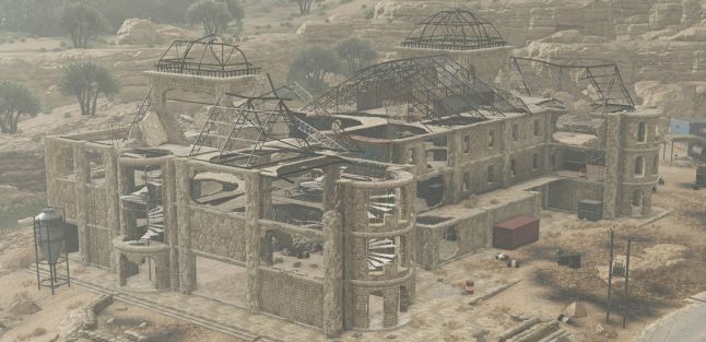 The Lamar Khaate Palace provides a good example of one such point of interest. Located on the western side of the Northern Kabul map, the area is separated from the nearest points of interest — Yakho Oboo Supply Outpost, Wakh Sind Barracks, Da Wialo Kallai, and Da Shago Kallai — by the sandy Leke Desert. There are check points guarding the roads to the north and south. Drop a few mines or a C-4 charge anywhere along most of these and you can ambush the vehicles traveling around on them. There should be one passing by every few minutes. (You can also capture them with a Fulton Device).