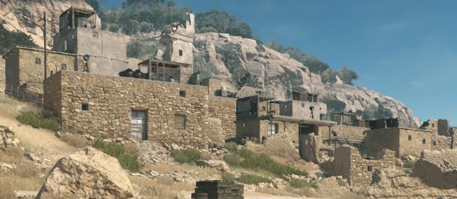 Points of interest like the Aabe Shifap Ruins and the Afghanistan Central Base Camp are mostly prospect space, but the game world also contains less daunting areas. Da Ghwandai Khar is one of these. This village in the middle of the Northern Kabul map is a collection of tightly-packed buildings with few open spaces. Guards periodically roam through its narrow streets. Infiltrating Da Ghwandai Khar isn’t especially hard because there’s always a nearby hiding spot. Take a turn at the closest corner and slip into the shadows if you ever get caught. Many of its buildings have a collapsed wall or two, so you can even observe some of the guards from a safe distance before closing in on your main target: Kazuhira Miller. (Hideo Kojima appears in Da Ghwandai Khar as well, but only after you’ve rescued Miller). Getting back out is no more difficult than getting in.