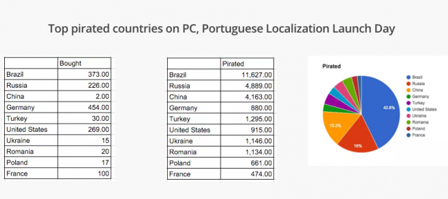 But what's potentially more interesting is how Nichiporchik makes a point of calling out specific regions of the world where fellow devs who take the time to localize their game may see spikes in pirated copies.