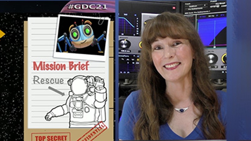 So happy you've joined us! I'm video game composer Winifred Phillips, and I'd like to welcome you to the continuation of this series of articles based on my lecture from GDC 2021 - From Spyder to Sackboy: A Big Adventure in Interactive Music! Using the example of two of my projects from the previous year, I explored the contrasting models of dynamic music design employed in two games - Sackboy: A Big Adventure for PS5/PS4, and Spyder for Apple Arcade. (Above you'll see a photo from one of the sections of my GDC 2021 lecture in which I'm discussing the Spyder project).