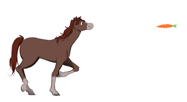 Being said, your opportunity to engage the receiver's senses and meaning making through plot and style can be found in the drive behind our desire to understand and learn. To demonstrate how balance and control are accessed during the pacing of motivation by making sense of the meanings presented before the receiver's senses, I will again use the example of the horse and the carrot. The image was introduced in Part 6 to illustrate how you employ the dynamic forces behind the desire to understand and learn from how you provide and withhold information.